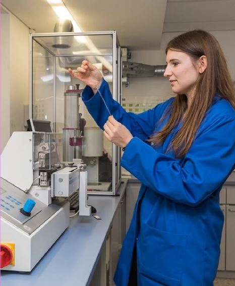 „Ich wollte in einem technischen, naturwissenschaftlichen Bereich arbeiten. Bei NOWOFOL auf der Webseite habe ich mir dann alle Ausbildungsberufe angesehen und mich für die Ausbildung zur Werkstoffprüferin beworben. Ich wurde zu einem Probetag eingeladen und da wurde mir alles gezeigt. Die moderne Laborausstattung hat mir gleich gefallen. Alle waren sehr nett. Sie haben mir gezeigt, wie man Zugversuche macht und Schlagzug und ich durfte es gleich selbst ausprobieren. Da spannt man die Folie ein und prüft, wie reißfest sie ist.“
